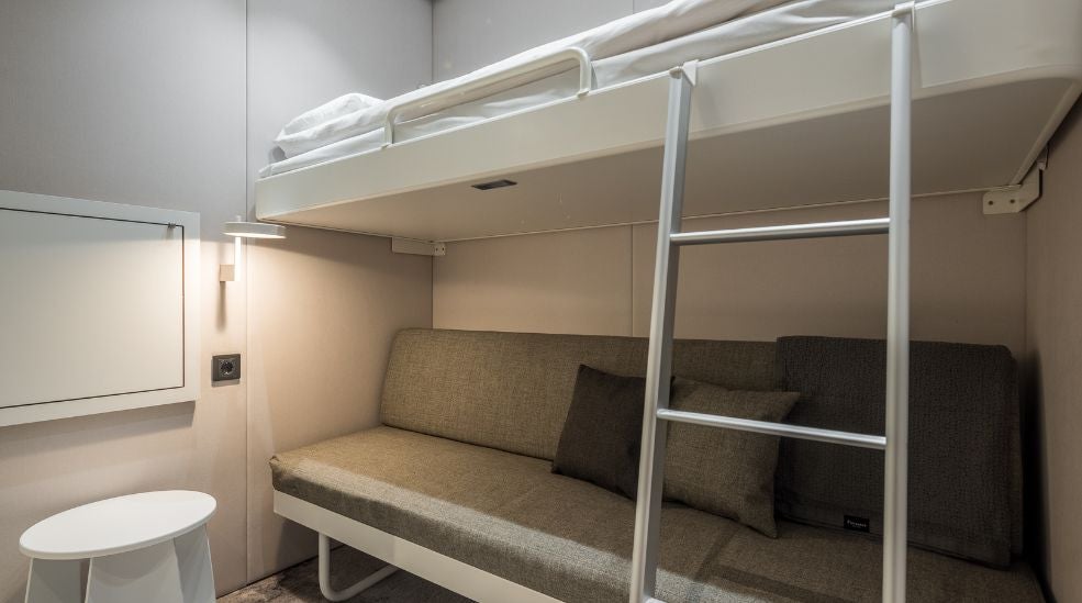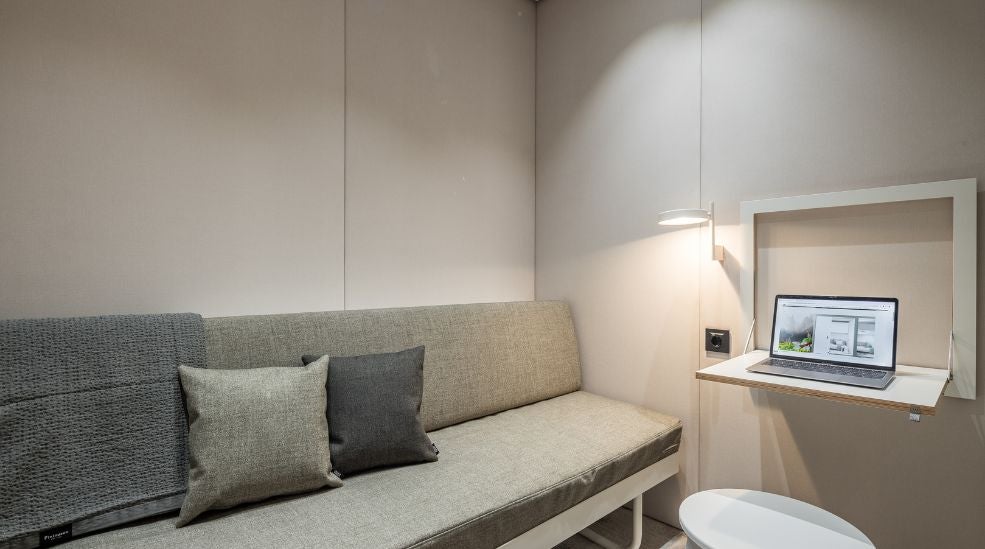 - Fleksibel hvile: Sovesofa som enkelt forvandles til en behagelig seng. RestPod+ har ekstra veggseng for to personer.