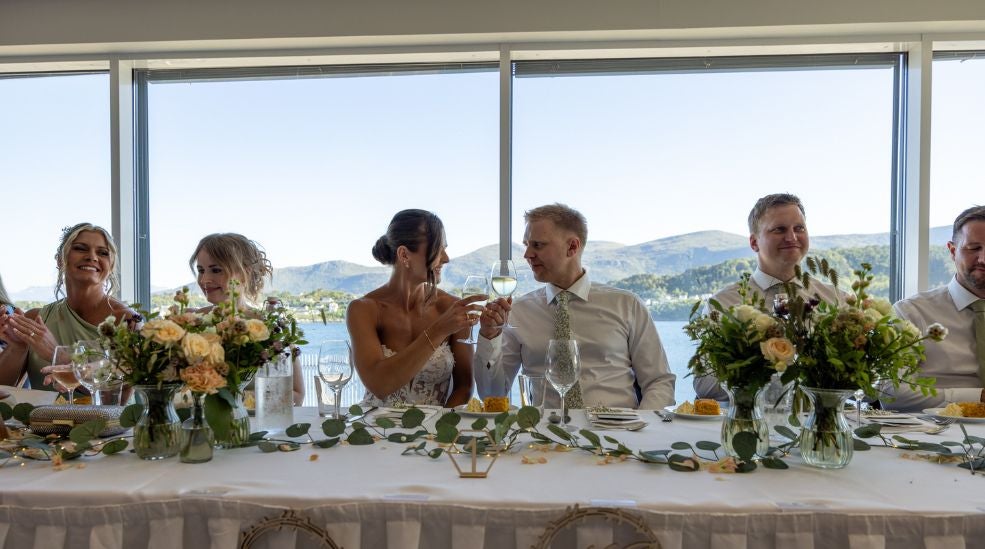 Etter en dag fylt med minner, venter en romantisk brudesuite med fjordutsikt, champagne og blomster. Her kan dere nyte stillheten, sen utsjekk og en perfekt avslutning på en uforglemmelig dag. Brudesuiten kan enkelt legges til som del av pakken, som det lille ekstra.