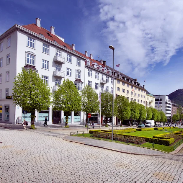 Hotel Oleana ligger i hjertet av Bergen, rett ved den vakre teaterscenen Den Nationale Scene og det livlige torget Torgallmenningen. Shopping og Bergens rike kulturliv finner du rett utenfor døren, og populære severdigheter som Fisketorget og Bryggen med sine unike hus og butikker ligger kun 7 minutters gange fra hotellet. Kommer du til Bergen med tog, ligger Bergen stasjon 10 minutter unna, og Bergen lufthavn er kun 20 minutter unna med bil. Oppdag den vakre kystbyen ved å bo sentralt med havet, fjorden og fjellene innen rekkevidde.