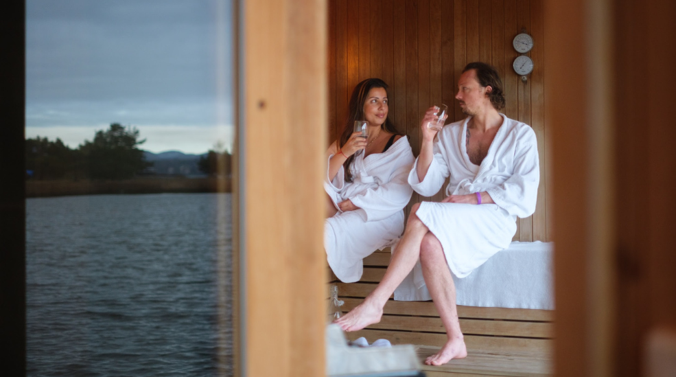 Opplev kontrasten mellom varm badstue og frisk sjø. Den flytende badstuen ligger rett utenfor hotellet – klar for en avslappende stund etter padling, trening eller båttur.