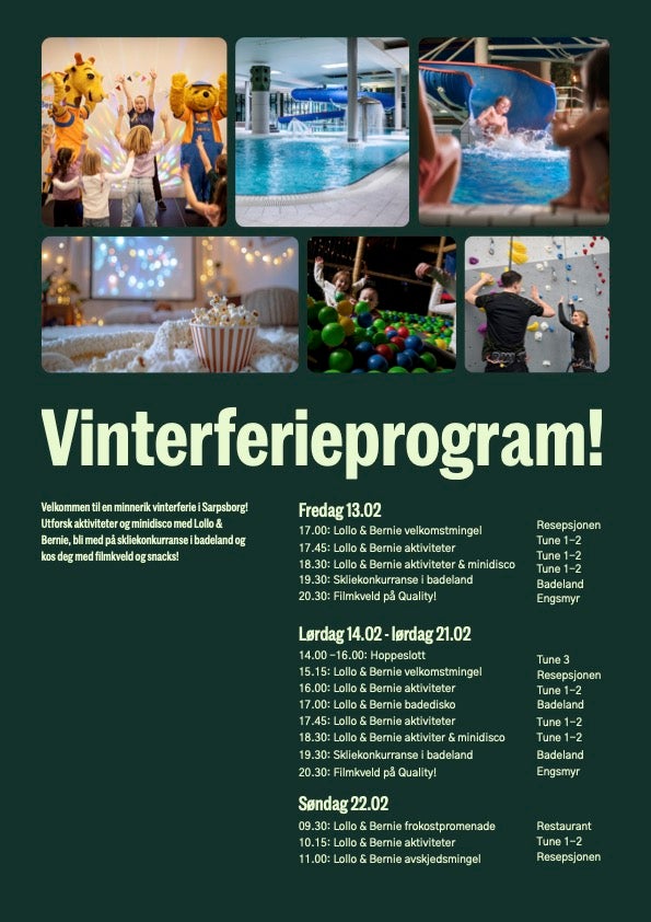 Gjør deg klar for en uforglemmelig vinterferie på Quality Hotel™ Sarpsborg i uke 8!