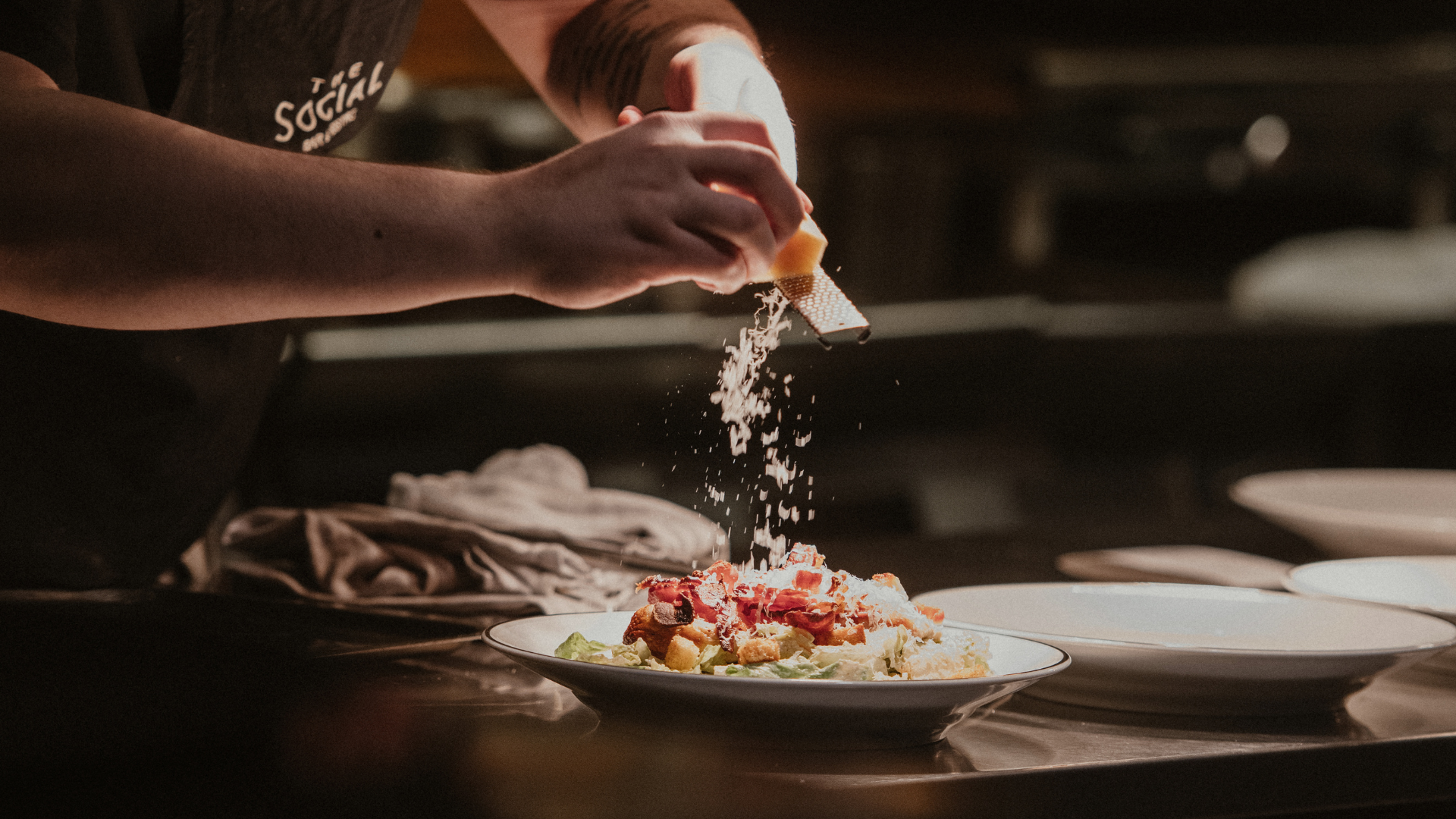 En lett spekemattallerken til forrett, etterfulgt av ditt valg mellom pasta eller en klassisk Cæsarsalat.