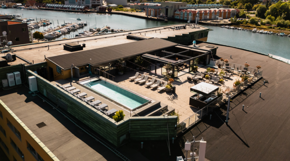 På takterrassen vår finner du The Pool Club! Her kan du nyte fantastisk utsikt mens du slapper av i komfortable loungeområder. Ta en dukkert i vårt oppvarmede utendørsbasseng på 32 grader og kjenn kontrasten mellom det varme vannet og den friske vinterluften. Ønsker du å varme deg litt ekstra, kan du trekke inn i vår innendørs badstue og nyte roen.